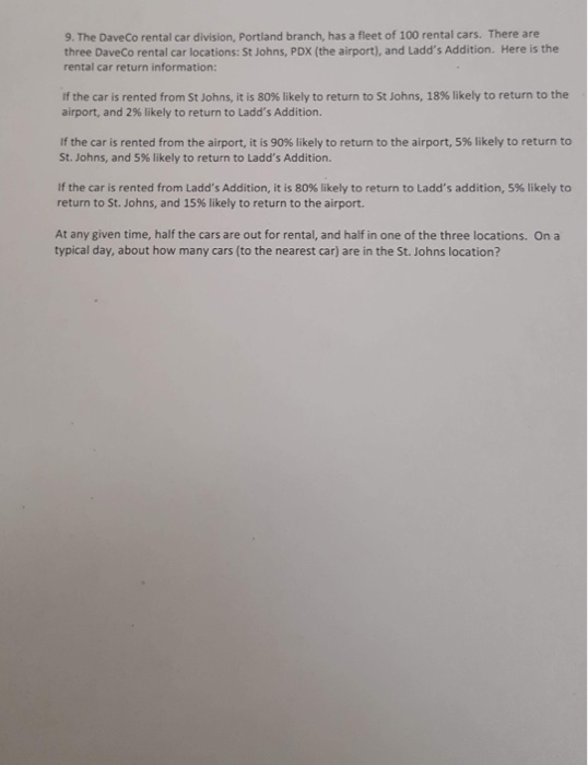 Solved 9 The Daveco Rental Car Division Portland Branch